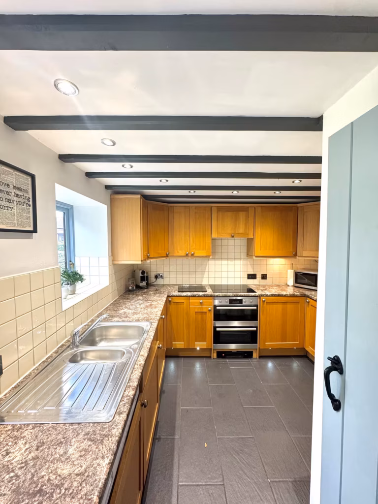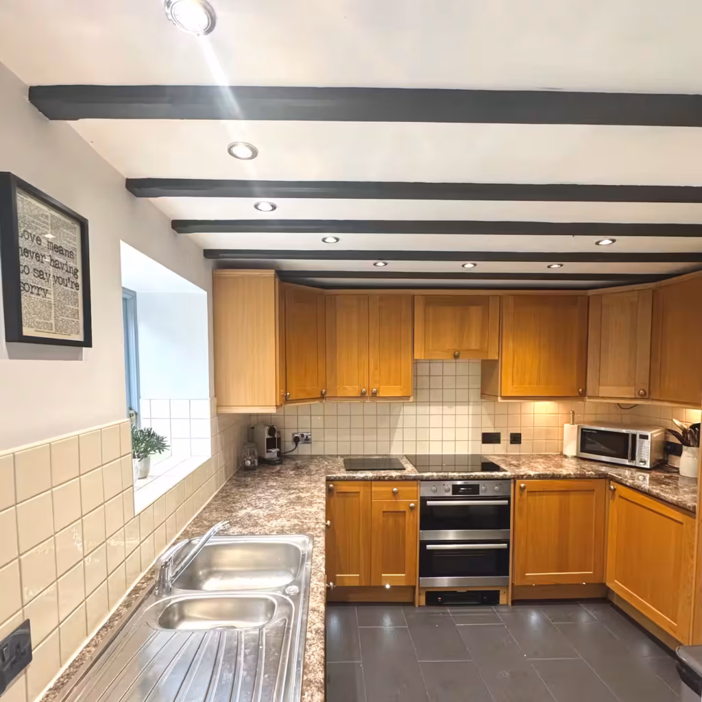 Step inside to discover a welcoming blend of comfort and character. The ground floor features a cosy living room with a fire ideal for relaxing after a day of exploring and a fully equipped kitchen with everything you need to enjoy home-cooked meals.